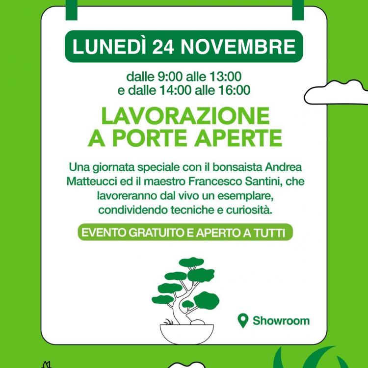 Un evento gratuito e aperto a tutti, durante il quale i nostri esperti lavoreranno dal vivo su un bonsai. Un’occasione preziosa per osservare da vicino tecniche, strumenti e processi creativi, e per fare domande direttamente ai professionisti.