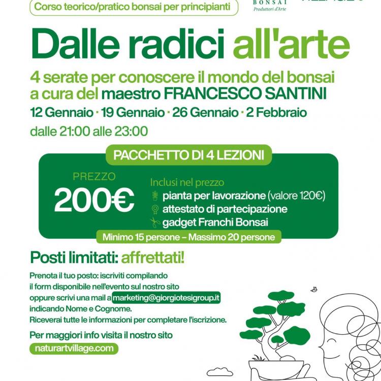 Franchi Bonsai è lieta di annunciare una nuova serie di appuntamenti dedicati all’arte del bonsai, che si terranno al Naturart Village di Pistoia. Un’occasione speciale per avvicinarsi a questa antica disciplina o approfondirne la conoscenza, grazie alla collaborazione con esperti del settore come il maestro Francesco Santini e il bonsaista Andrea Matteucci.
