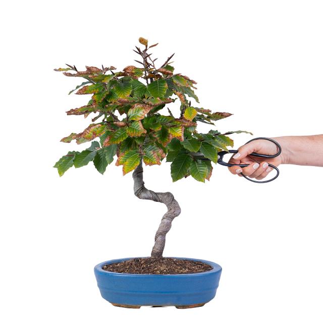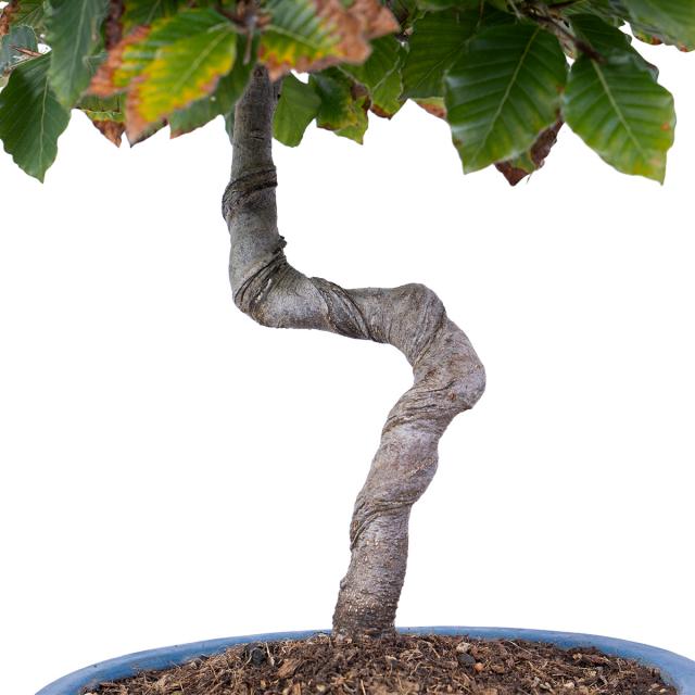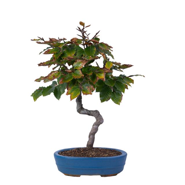 Il bonsai di Faggio ha un aspetto forte ed elegante, la corteccia è chiara, tendente al grigio e le foglie sono ovali, allungate e ondulate, di colore verde intenso nella parte superiore e più chiare in quella inferiore.