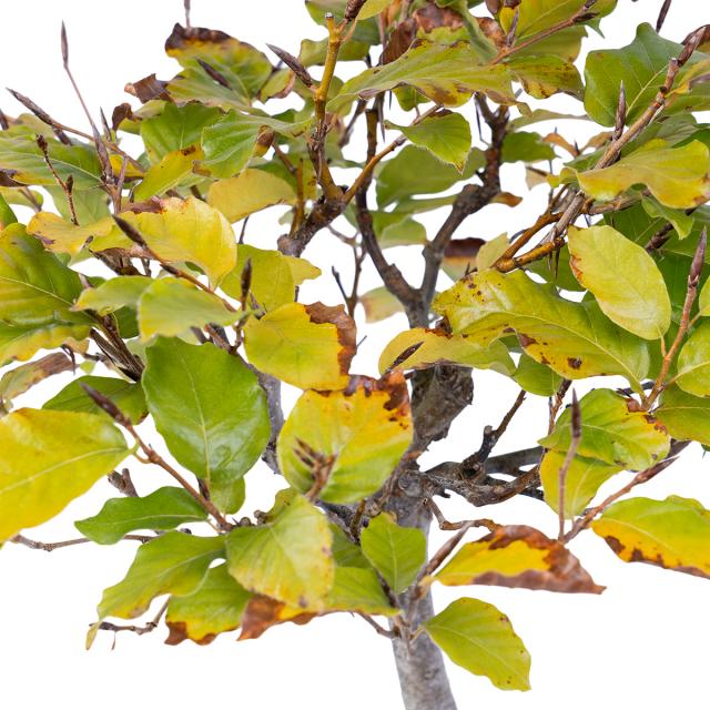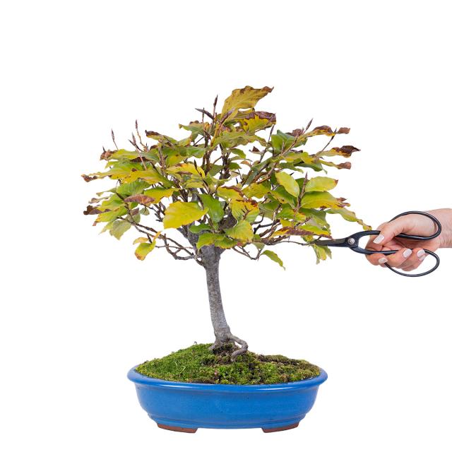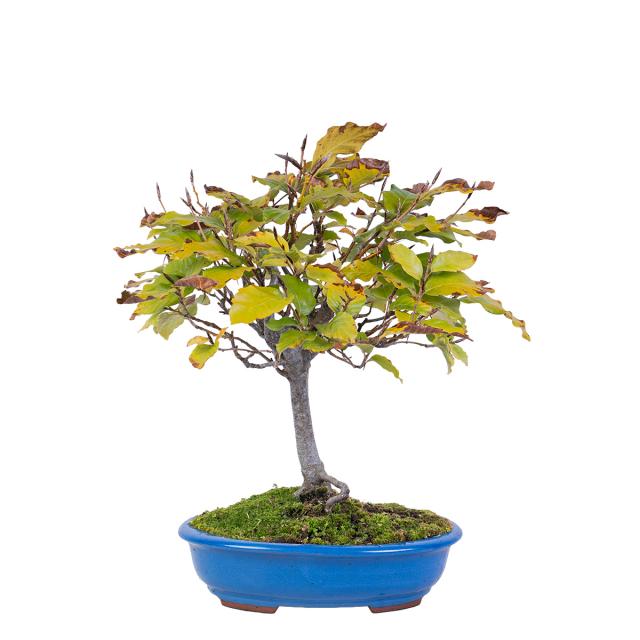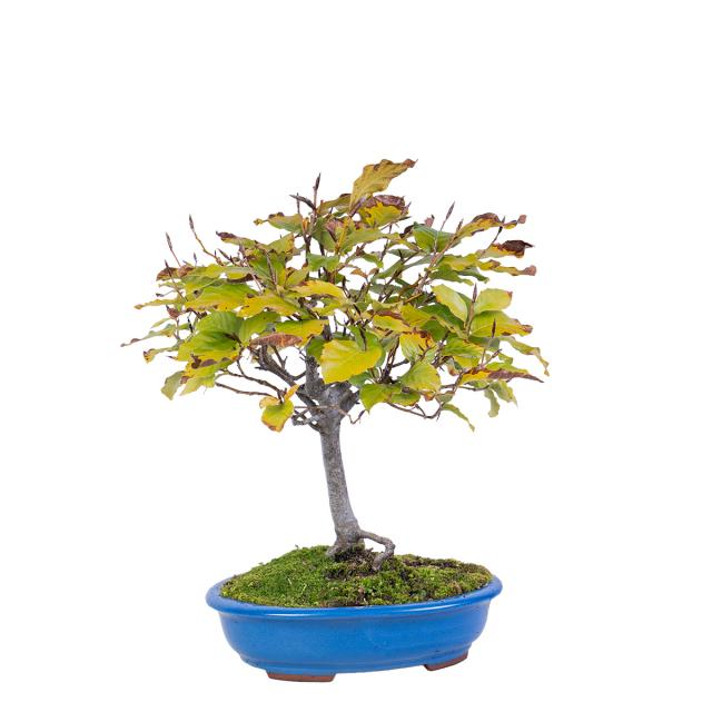 Il bonsai di Faggio ha un aspetto forte ed elegante, la corteccia è chiara, tendente al grigio e le foglie sono ovali, allungate e ondulate, di colore verde intenso nella parte superiore e più chiare in quella inferiore.