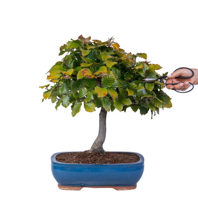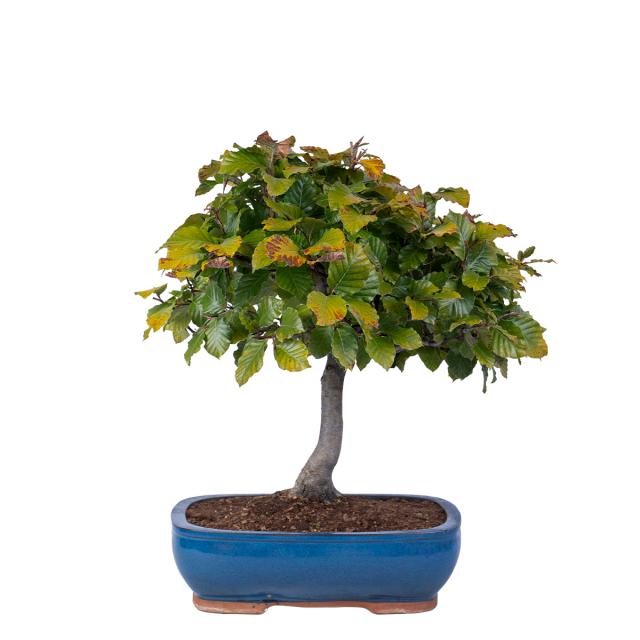 Il bonsai di Faggio ha un aspetto forte ed elegante, la corteccia è chiara, tendente al grigio e le foglie sono ovali, allungate e ondulate, di colore verde intenso nella parte superiore e più chiare in quella inferiore.