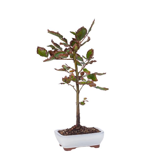 Il bonsai di Faggio ha un aspetto forte ed elegante, la corteccia è chiara, tendente al grigio e le foglie sono ovali, allungate e ondulate, di colore verde intenso nella parte superiore e più chiare in quella inferiore.