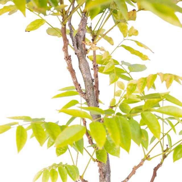 Di grande valore bonsaistico sono la Wisteria floribunda coltivata in Giappone con lunghi rami tortuosi, foglie giallo-verde e fiori blu, e la Wisteria sinensis coltivata in Cina, più vigorosa della floribunda.