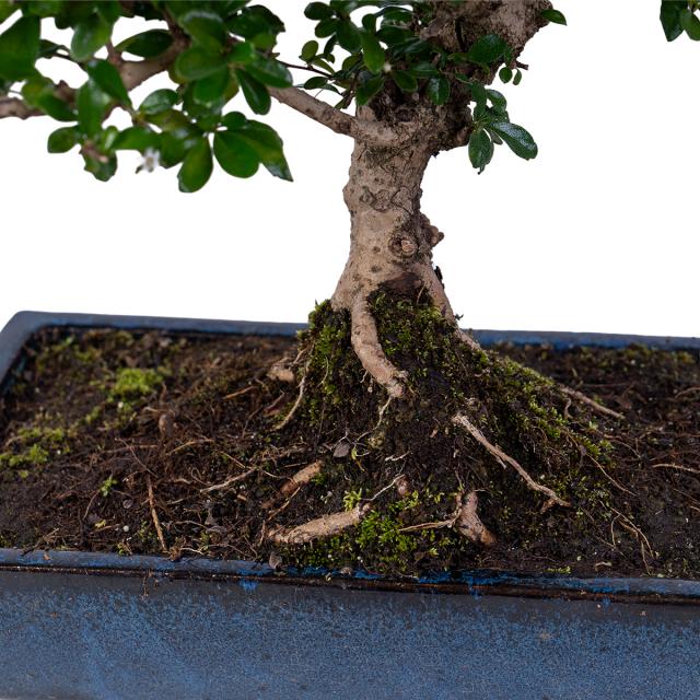 La Carmona Retusa è una pianta sempreverde della famiglia delle Boraginaceae originaria delle regioni calde dell’Asia. Conosciuta anche come “Pianta del Tè Fukien”, ha foglie piccole ovali color verde scuro brillante e durante l’anno produce piccoli fiori bianchi e talvolta bacche giallo-rosso. Grazie alle sue caratteristiche è molto adatta ad essere coltivata come bonsai in vari stili.