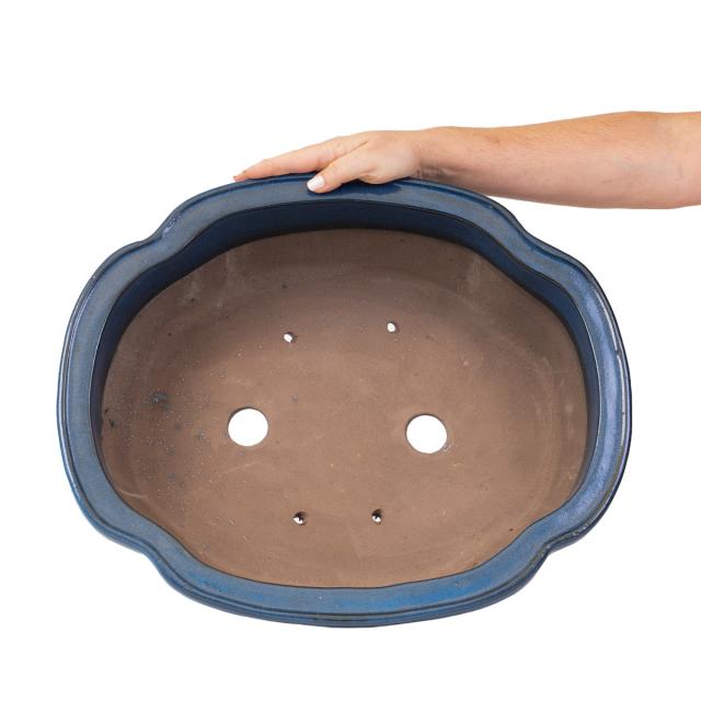 VASO OVALE BLU IN GRES SMALTATO CM 50X42X15