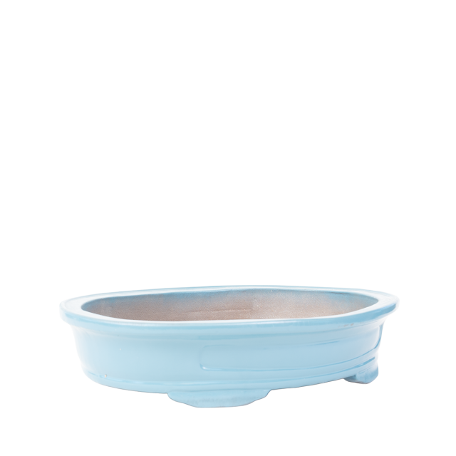 VASO OVALE CELESTE IN GRES SMALTATO CM 41X33X9