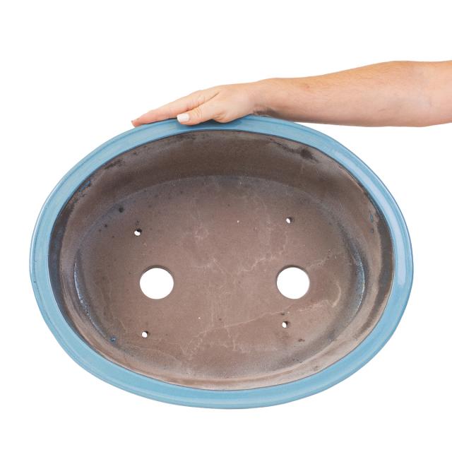 Vaso ovale celeste in gres smaltato cm 51X40X16