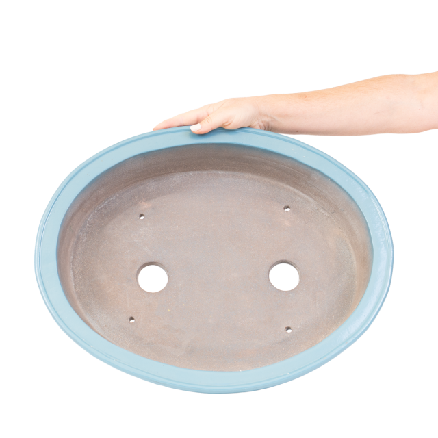 Vaso ovale celeste in gres smaltato cm 52X41X11