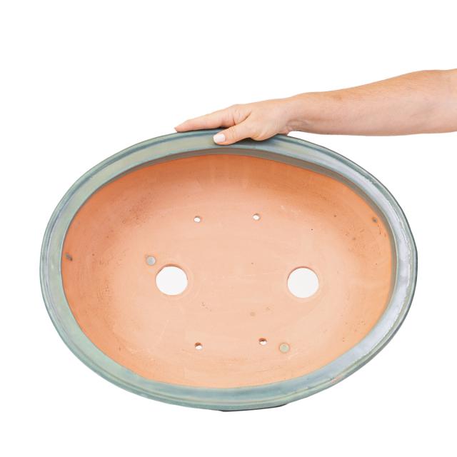 Vaso ovale verde in gres smaltato cm 41X32.8X9