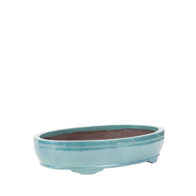 Vaso ovale verde in gres smaltato cm 44X30.5X8.5