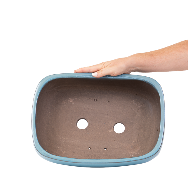 Vaso rettangolare celeste in gres smaltato cm 39X28X12