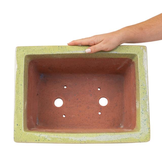 Vaso rettangolare verde in gres smaltato cm 41X31X16.5