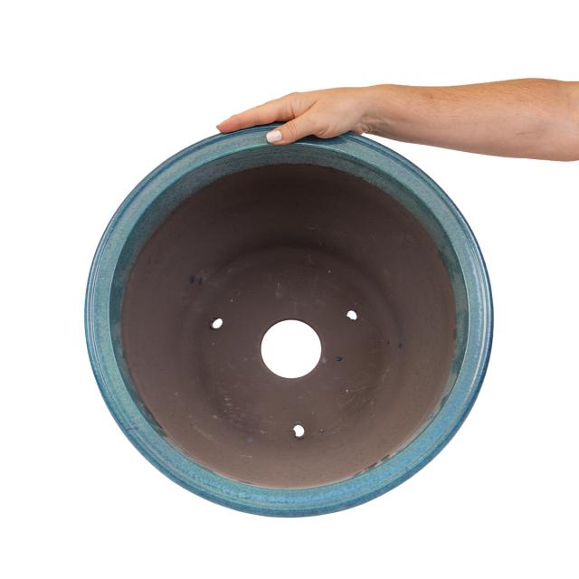 Vaso rotondo blu in gres smaltato cm 44x44x22,5